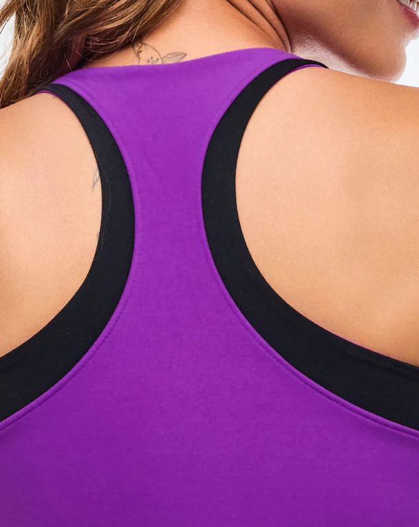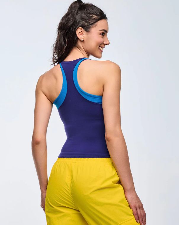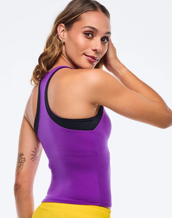 - Performance tank silhouette with inner shelf bra lining