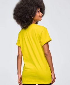 This unisex crew neck tee features a rib-knit collar and offers an easy, comfortable fit with a longer length for versatile styling.