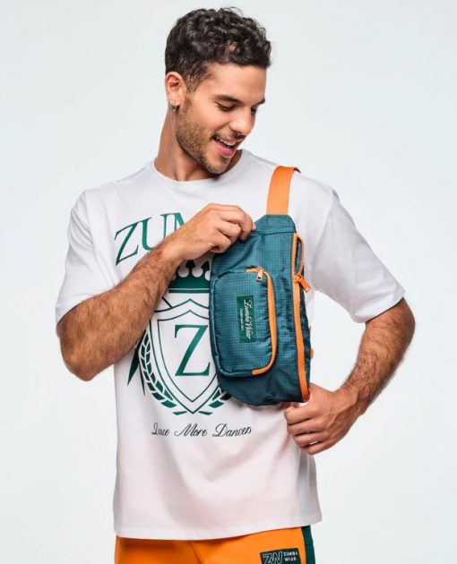 • Lined crossbody bag with zipper closure, zipper closure front pocket, zipper closure back pocket, interior pocket, and adjustable waist strap