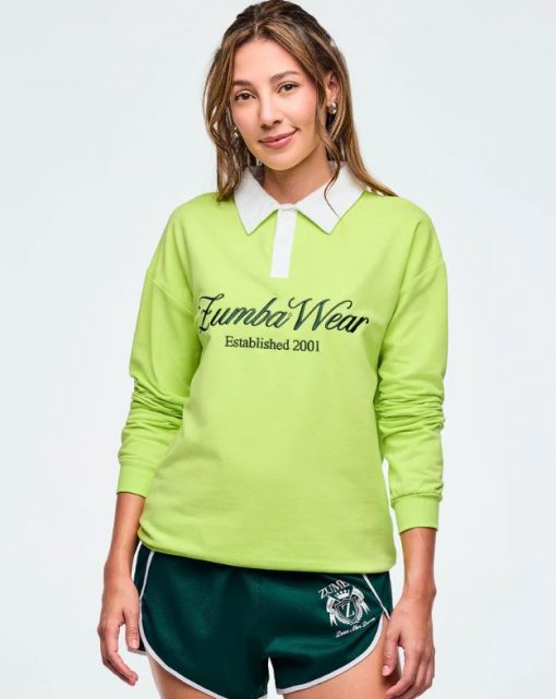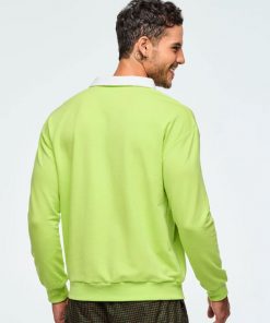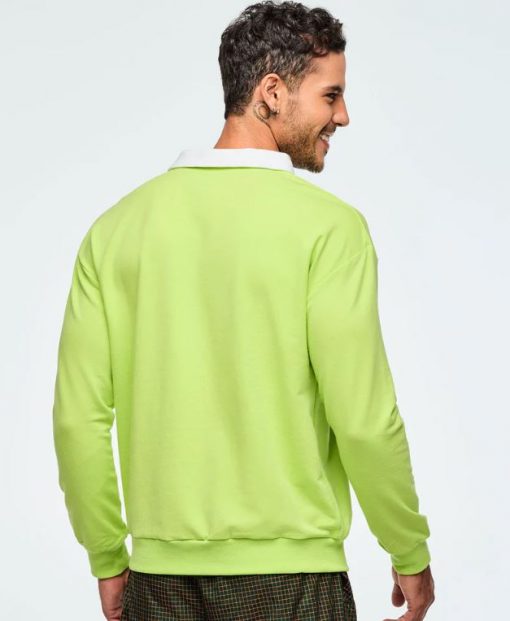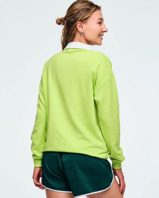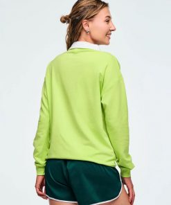 - Oversized pullover sweatshirt with contrast woven polo collar
