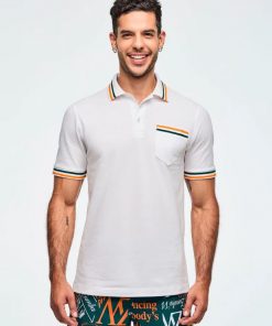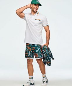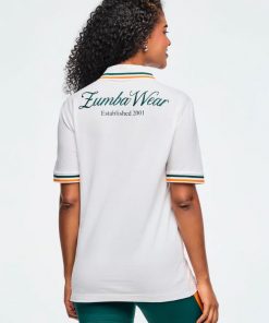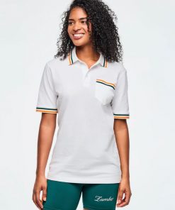 Experience comfort and style with this men’s polo featuring a pique knit collar and a practical front button placket. It showcases striped flat knit cuffs alongside a detailed pocket trim, enhanced by a unique Zumba graphic on the back. Designed for an easy fit and extended length, this polo is perfect for a polished, casual look.