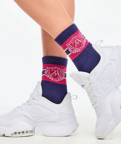 • Preppy inspired multicolor stripe and ZW crest on the outside of each sock