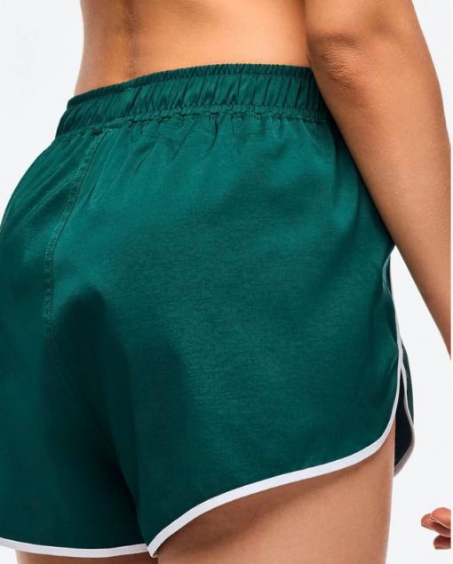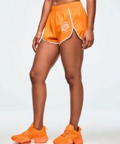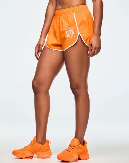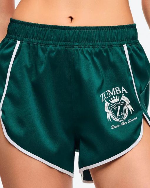These running shorts feature a 2.5″ inseam and a sporty silhouette with curved side vents for enhanced movement. Designed with an encased elastic waistband and contrast binding along the sides and leg openings, they also include convenient inseam pockets. Finished with a distinctive Zumba graphic on the leg, these shorts offer an easy fit and a comfortable short length perfect for active wear.