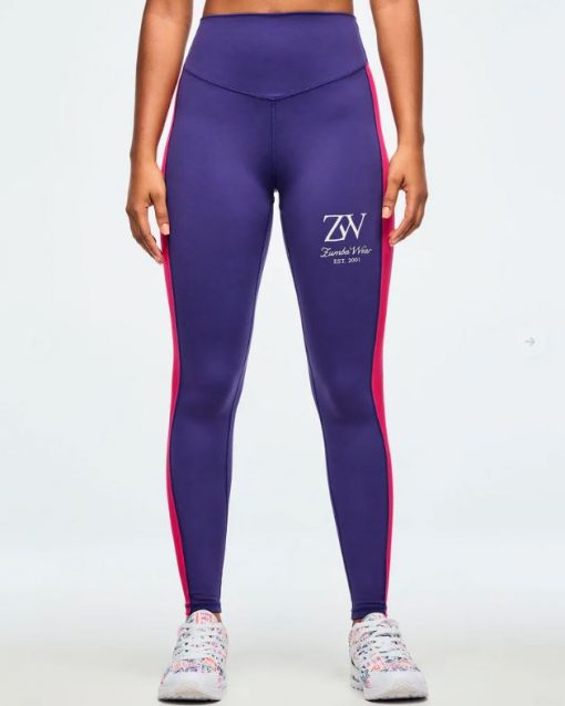 These Soft navy leggings feature a 26″ inseam and an ultra high-rise waistband without internal elastic for a smooth, comfortable fit. With a slim silhouette and ankle length, they showcase a distinctive Zumba-exclusive graphic on the leg, blending style and performance seamlessly.
