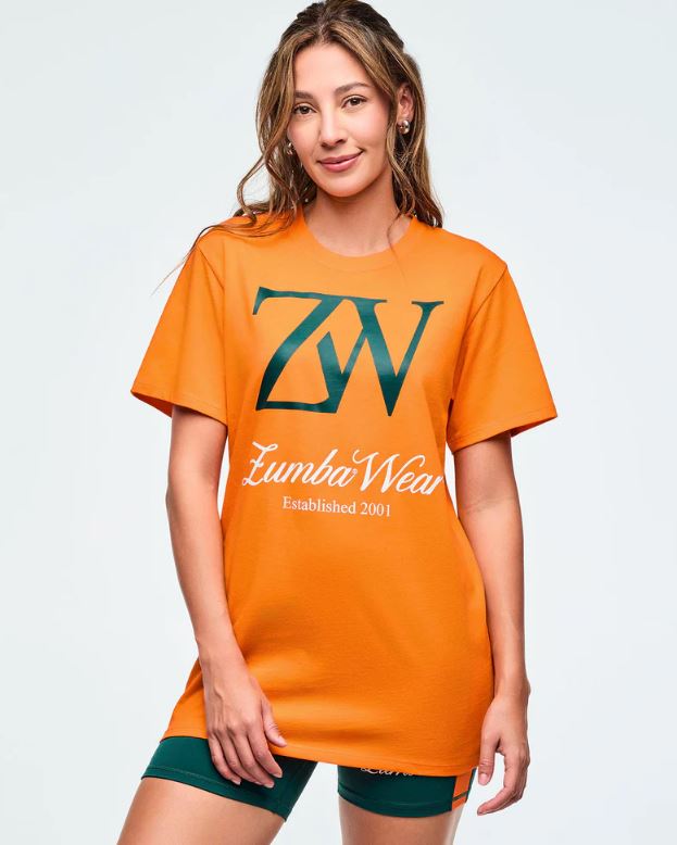 This unisex tee in combined sizes features a rib knit collar and a distinctive Zumba-exclusive graphic on the front. Designed for an easy fit and extended length, it offers both comfort and style for instructors.