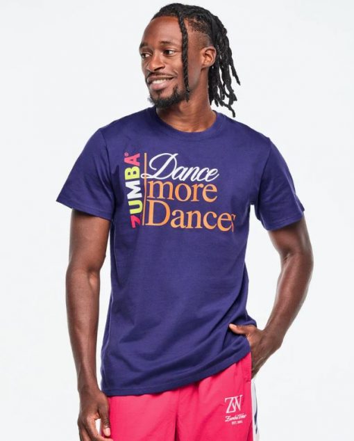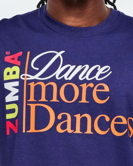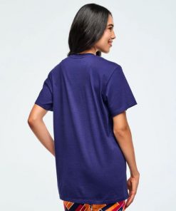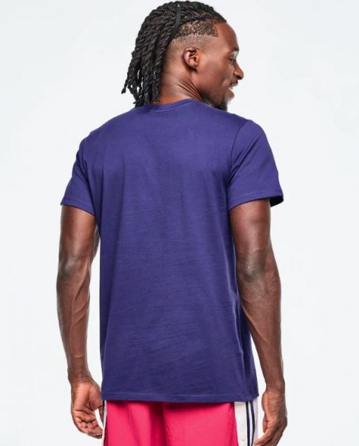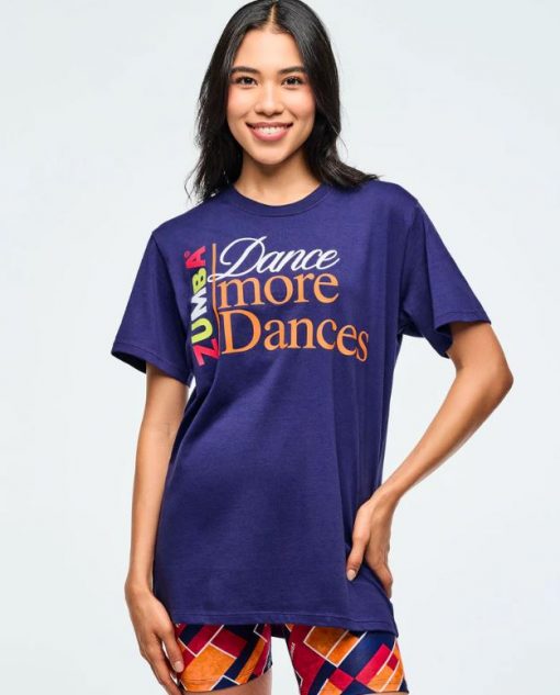 This unisex tee, available in combined sizes, features a rib knit collar and a distinctive Zumba-exclusive graphic on the front. Designed for an easy fit with a longer length, it offers comfort and style for everyday wear.