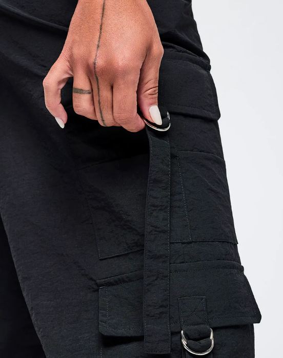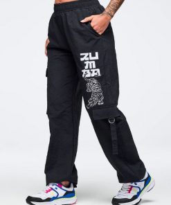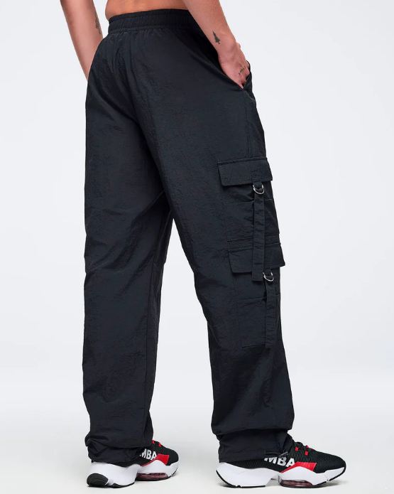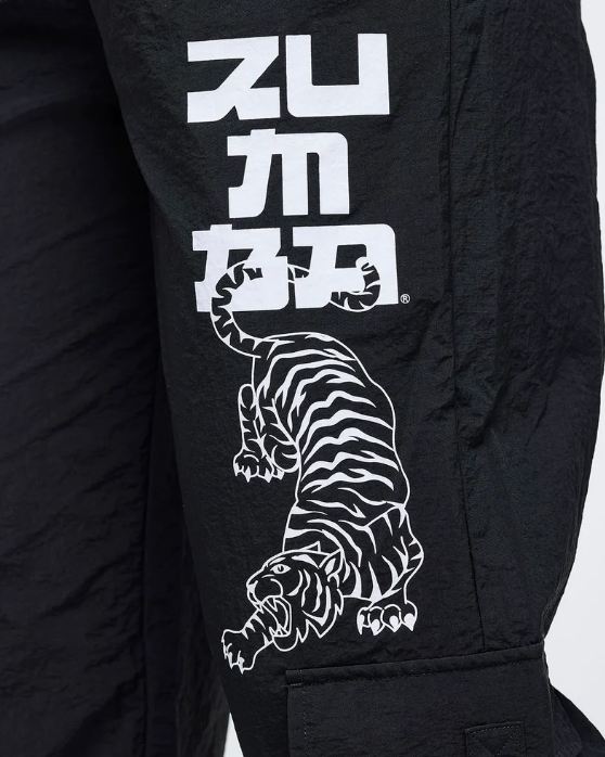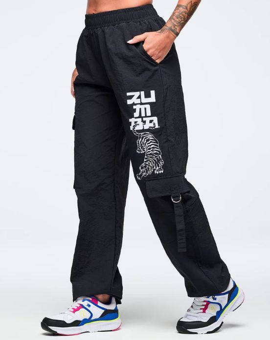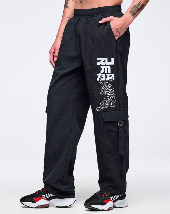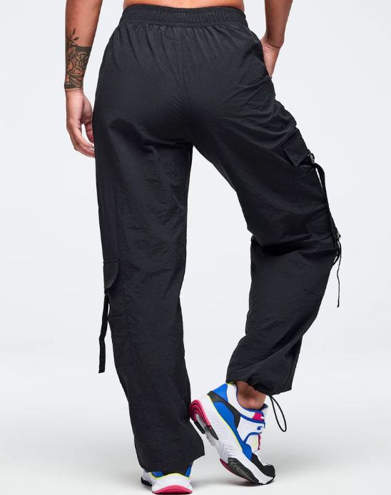 Make a statement with these Zumba high-rise cargo pants that combine bold style with everyday practicality. The swishy nylon fabric moves with you, while the 31½” inseam and oversized cut deliver an on-trend silhouette. Strategically placed side cargo pockets and slanted upper pockets offer ample storage without sacrificing aesthetics. An encased elastic waistband provides comfort, and the functional bungee drawcord at the leg opening lets you customize your look. Perfect for those who refuse to compromise between fashion and function.