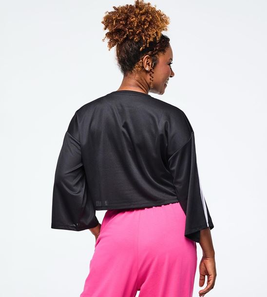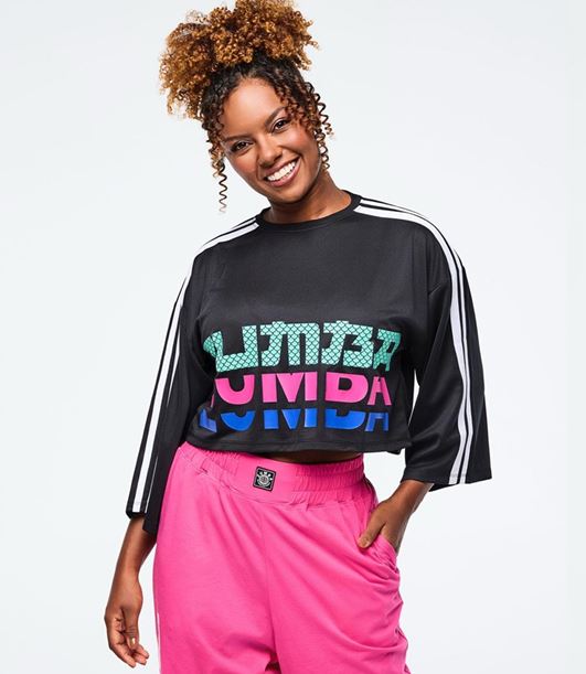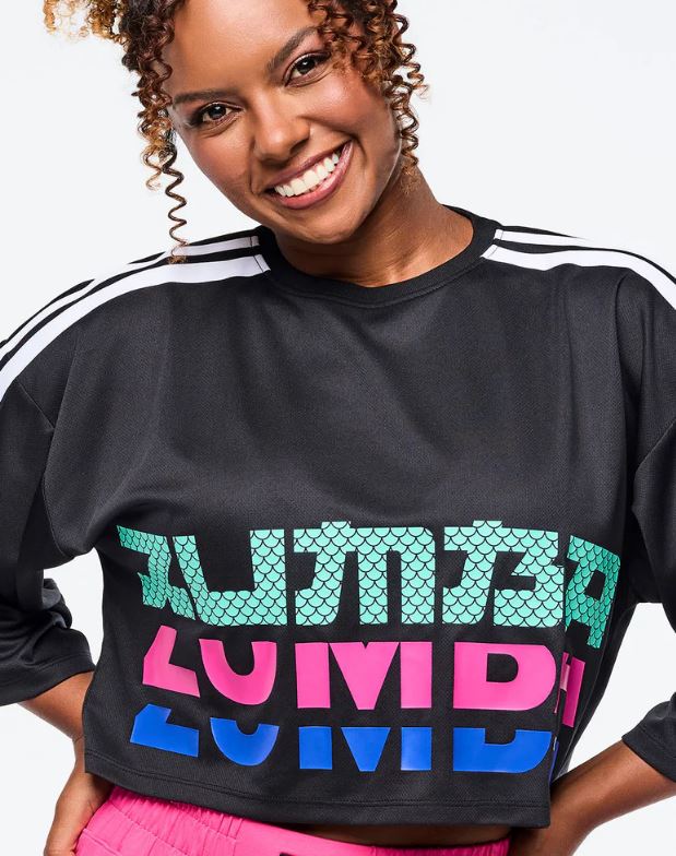 Make a bold fashion statement with this oversized Zumba boxy crop top that combines comfort with cutting-edge style. At 18″ front length in size S, it delivers the perfect cropped proportion with generous proportions throughout. Wide sleeves provide movement and visual impact, while striking contrast strapping down the center of shoulders and sleeves adds architectural interest. The reinforced rib knit neckband ensures durability, and the oversized fit works beautifully with everything from high-waisted bottoms to layered looks. Unapologetically trendy and undeniably comfortable.