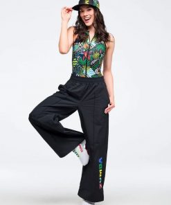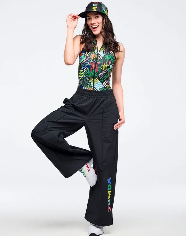 • Zumba-branded rubber patch on wearer’s right leg