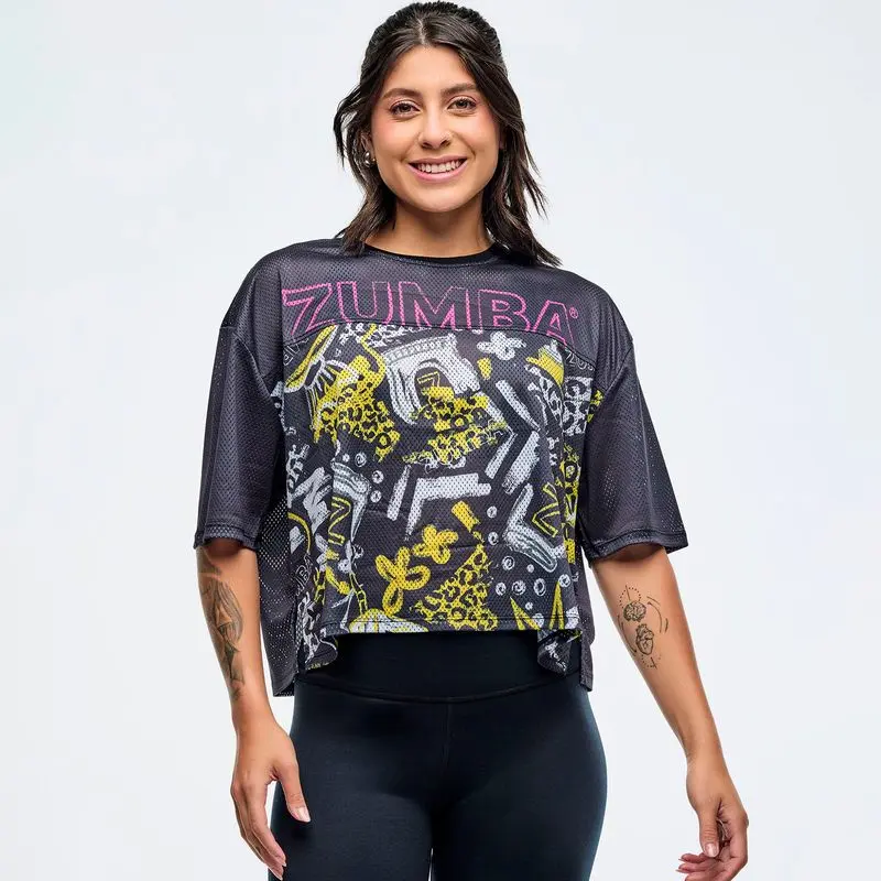 Color-blocked with an exclusive Zumba all-over print, this crop top is not just functional but also a statement piece that reflects your vibrant personality. With a front length of 20 inches (50.8 cm) for size S, it pairs perfectly with high-waisted leggings or shorts, making it a versatile addition to your wardrobe.