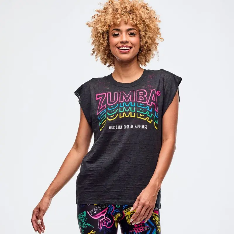 Distinctive features such as the rib knit collar and raw edge at the armhole contribute to the tank’s modern appeal. The Zumba-exclusive front graphic serves as a bold statement, reflecting your vibrant personality and passion for movement. Whether you’re dancing, stretching, or simply enjoying a day out, the Sizzlin’ Muscle Tank is designed to inspire confidence and energy.
