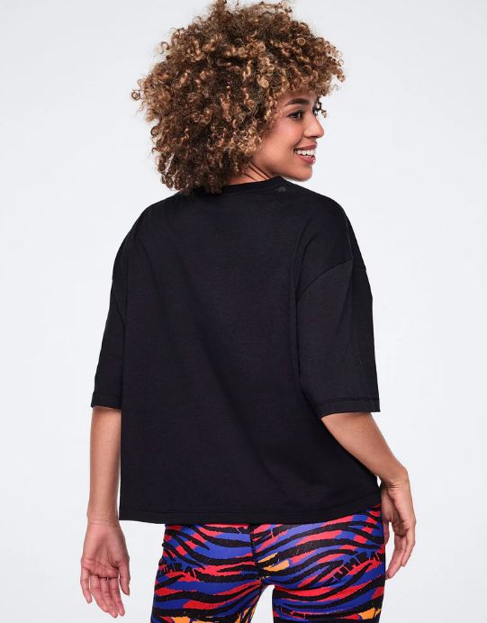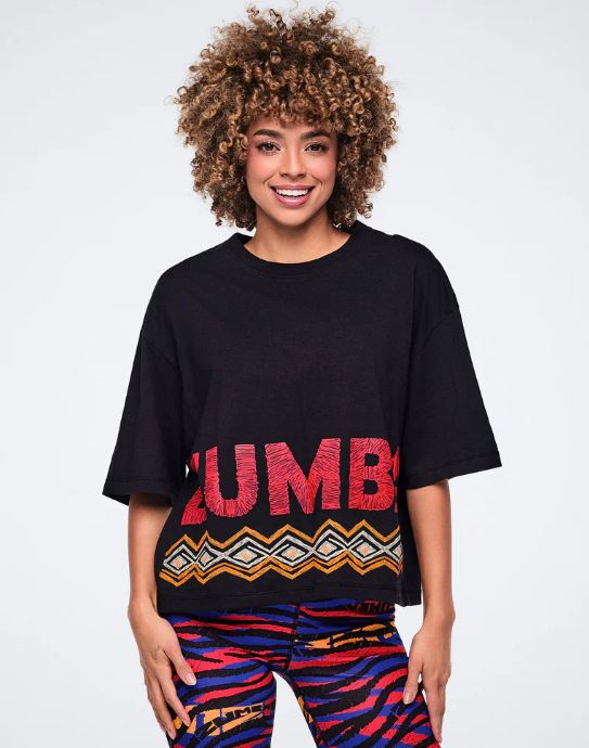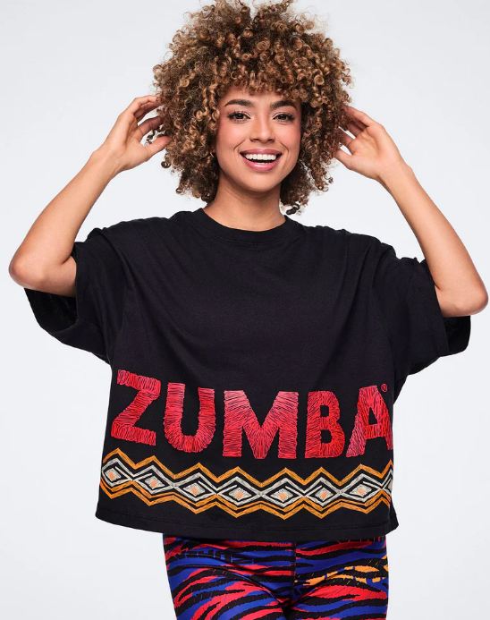 The Wildbeat Oversized Boxy Crop Top brings effortless style to your workout wardrobe. Featuring a relaxed, oversized silhouette with a cropped length that hits at 22″ on the front, this tee keeps things comfortable and on-trend. The ribbed knit collar adds structure while the exclusive Zumba-exclusive front graphic makes a bold statement. Perfect for Zumba class or casual wear.