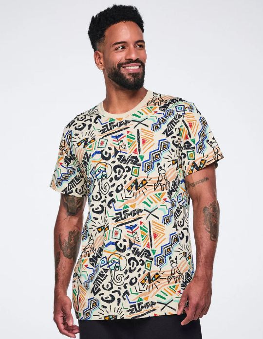 The Wildbeat Unisex Crew Neck Tee brings effortless style to your wardrobe with its eye-catching multicolor Zumba-exclusive allover print. Featuring a comfortable easy fit and elongated length, this tan and black tee pairs a structured rib knit collar with relaxed vibes perfect for any occasion. Whether you’re heading to Zumba class or just hanging out, this versatile piece keeps you looking fresh and feeling great.