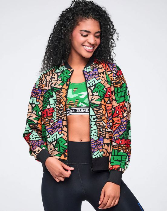 Throw on the Wildbeat Woven Track Jacket and you’re ready for whatever comes next. This raglan-cut bomber features a crisp zip front, cozy rib knit details at the neck, cuffs, and hem, plus an exclusive Zumba graphic that sets you apart. Slip your essentials into the inseam pockets, enjoy the easy relaxed fit, and move through your day in comfort. Perfect for layering before class or just keeping it chill between Zumba workouts.