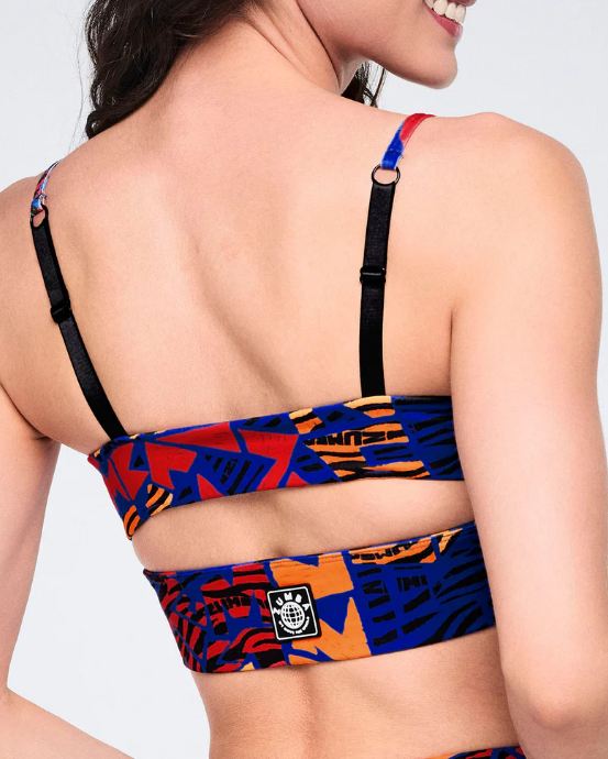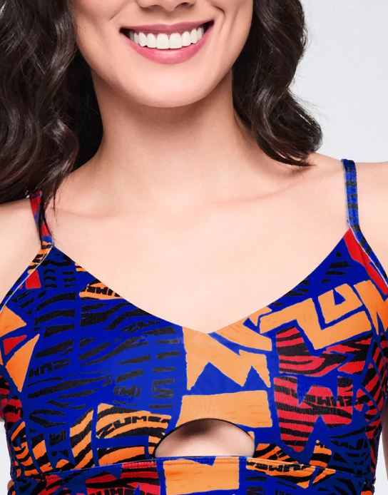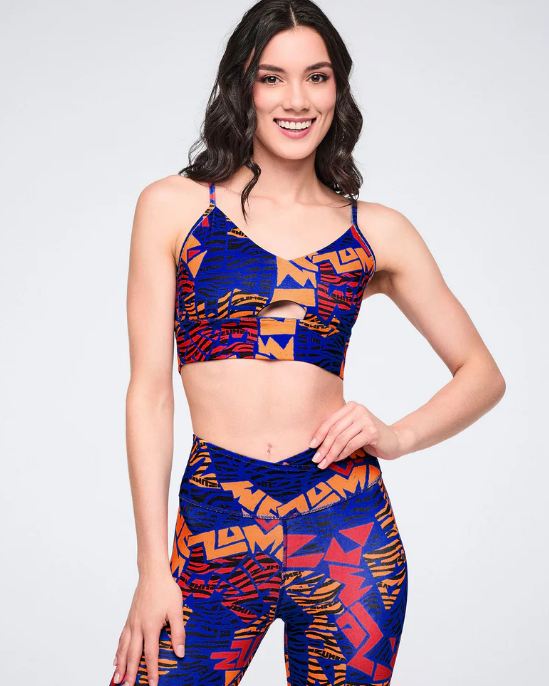 Move to the beat in the Wildbeat Z-Lift Strappy Bra. This bralette features a chic strappy design with front and back keyholes for a modern vibe. The adjustable back sliders let you dial in the perfect fit, while the wide waistband keeps everything secure through your dance sessions. Rocking the exclusive Zumba graphic print and branded patch, this slim-fitting style is built for dancers who want comfort without compromise.