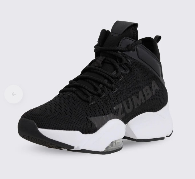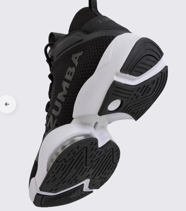 The Zumba Air Stomp Funk 2.0 – Bold Black mid-top design that dances with you! Split outsole gives your feet the flexibility they need for natural movement and killer workouts. Double airbag cushioning absorbs impact so you can push harder without the pounding. Heat-sealed side panels keep things durable and supportive while looking clean. Adjustable back TPU lets you dial in the fit exactly how you want it. Lightweight, breathable flat knit keeps your feet cool when things heat up. Built for balance and control during intense training or dance sessions. The sock-like fit with padded ankle collar hugs your foot without slipping, so you stay focused on the moves, not the shoe. Sleek enough to wear on the street, technical enough for serious Zumba workouts.