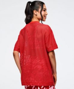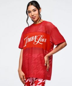 Express your Zumba passion in the Amour Boxy Mesh Top, an oversized silhouette that prioritizes comfort and movement. The breathable mesh construction keeps you cool during intense sessions, while the rib knit collar adds structure and polish. Featuring prominent branded artwork on the front chest, this long-length top delivers effortless style whether you’re dancing or keeping it casual.