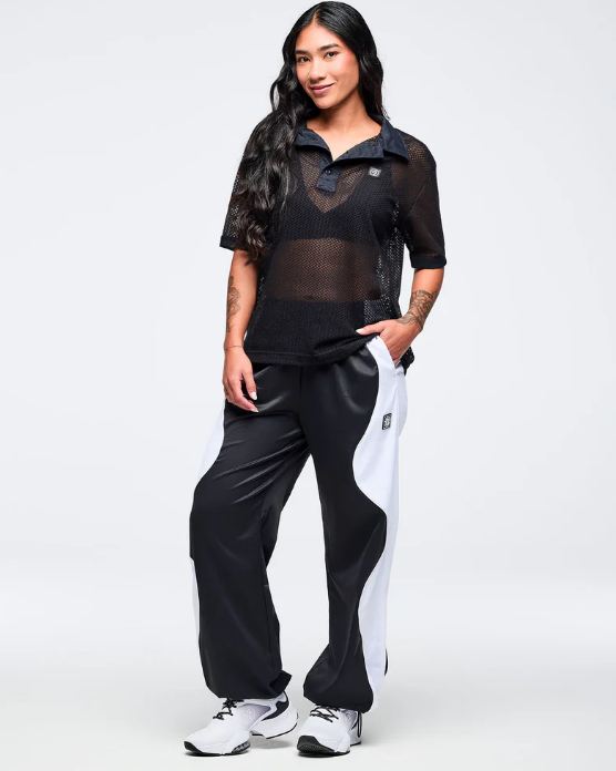 Experience the perfect blend of style and functionality with the Zumba Basic Wavy Track Pants in Bold Black. Designed specifically for the dynamic woman, these track pants are crafted from 100% woven polyester, ensuring durability and comfort during your most energetic activities. The lightweight fabric allows for breathability, making it ideal for both high-intensity workouts and casual outings.