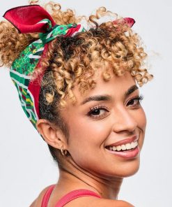 These 25″ x 25″ Zumba Holiday Bandanas come as a vibrant 1 piece perfect for festive style. The first features a tonal mountain-inspired print with bold oversized Zumba lettering along two edges, filled with holiday-themed accents. The second showcases a colorful plaid design with Zumba logos in each corner, adding a cheerful touch to your holiday outfits.
