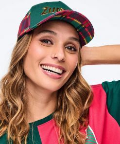This stylish Zumba Holiday Snapback Hat features an adjustable snapback for a comfortable fit with a circumference ranging from 51 to 60 cm. Its medium crown pairs perfectly with a curved brim made from printed plaid twill, extending to the side and back panels. The front showcases a raised metallic TPU Zumba logo, and the interior includes a sweatband to keep you dry during your moves. Perfect for a festive look with functional comfort.